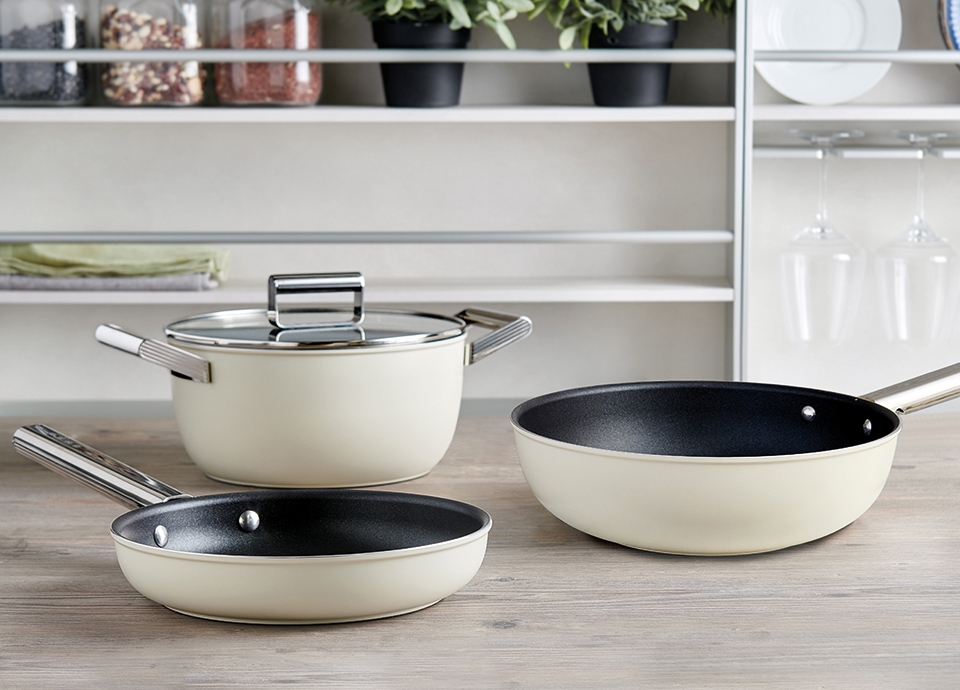 Cold-forged aluminum body with a 4.5mm thick, highly conductive stainless steel base for even heat distribution.